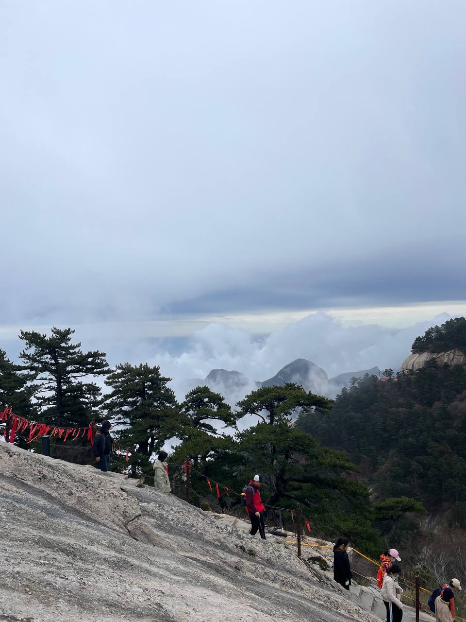 Прогулка по горному парку с подъемом на Фуникулере. Прогулка 3-3,5 часа. Очень красивый день сегодня. Горы Хуашань «Цветочная гора» великолепны как в весенний, так и в осенний период. Одна из пяти Священных Гор даосизма в Китае. Самым посещаемым является Южный пик горы. Здесь, на Южном пике, который китайцы называют Пиком падающего гуся, находится знаменитая Тропа смерти. Если захочется посетить это место, стоит вспомнить про нежную нервную систему китайцев, которые будут находиться в неподвижном полуобморочном состоянии впереди и позади вас. На тропе где не будет возможности их обойти.