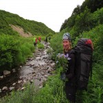 Речку Жупанова мы перейдем вброд, после чего доберемся до теплых источников, где и будет наш лагерь. Самое время отдохнуть, искупаться и сварить великолепную уху на ужин.