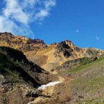 С раннего утра через тундру, грибной лес, мимо хрустальных ручьев идем в сторону спящего вулкана Дзензур. Его склон покрывают гигантские глыбы, оставшиеся здесь после извержения.