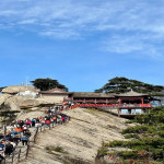 Прогулка по горному парку с подъемом на Фуникулере. Прогулка 3-3,5 часа. Очень красивый день сегодня. Горы Хуашань «Цветочная гора» великолепны как в весенний, так и в осенний период. Одна из пяти Священных Гор даосизма в Китае. Самым посещаемым является Южный пик горы. Здесь, на Южном пике, который китайцы называют Пиком падающего гуся, находится знаменитая Тропа смерти. Если захочется посетить это место, стоит вспомнить про нежную нервную систему китайцев, которые будут находиться в неподвижном полуобморочном состоянии впереди и позади вас. На тропе где не будет возможности их обойти.