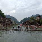 Городок с невероятной атмосферой, здесь проживает смешанный состав малых народов Китая, самым многочисленным является народ Мяо. Вы обязательно обратите внимание на бабулечек с большими прическами в цветастых нарядах, торгующие сувенирами. Так же, про этот город ходит легенда про феникса, недаром буквально везде его изображение можно увидеть. С недавних пор, здесь показывают вечернее шоу, но пока оно не регулярно. Во время представления, по небу летает птица феникс, я не понимаю как такое возможно сделать, но она как настоящая, с горящим хвостом - невероятно!